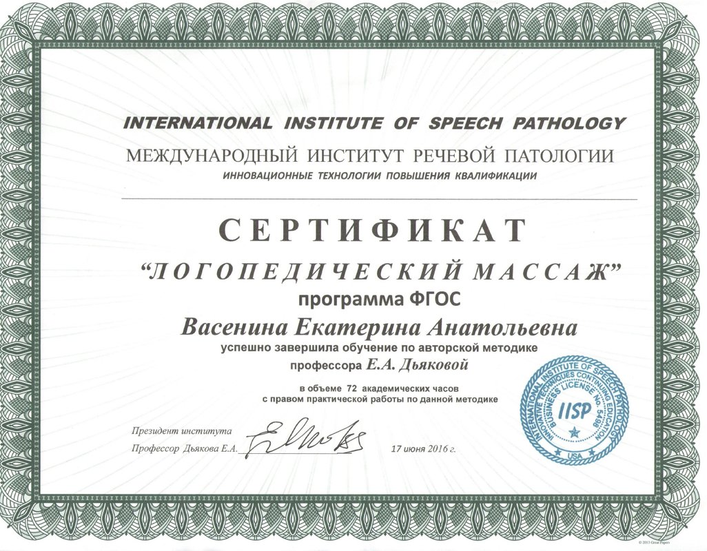 Проводит логопедический массаж по методике Дьяковой Е.А., находится в реестре специалистов.